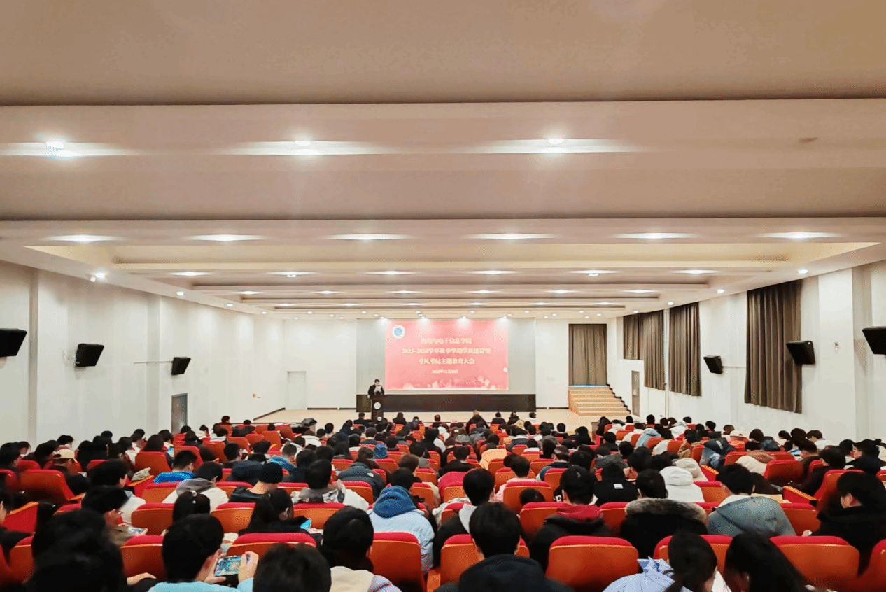 为加强学风建设,严肃考风考纪,强化诚信教育,12月25日下午,公司在老员工活动中心一楼红色影院召开了2023-2024学年秋季学期学风建设暨考风考纪主题教育大会。公司党委书记常胜伟、副经理杨能勋,全体辅导员以及2023级员工400余人参加了大会。大会由党委副书记肖金学主持。