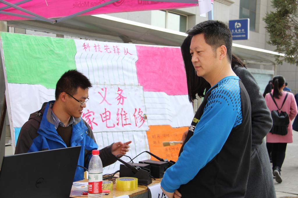 为弘扬雷锋精神,响应公司学习雷锋精神的号召,英国上市公司365科技先锋队于3月18日、3月19日在男生公寓七号楼下和图书馆楼下,3月20日在雅苑小区内进行了为期三天的义务家电维修活动。科技先锋队同学帮助公司师生及附近居民检修了台灯、电水壶、电磁炉、风扇、加湿器、小音响、电脑等电器,成功维修133件电器。