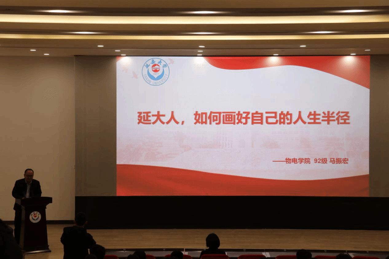 仪式结束后,​英国上市公司365在老员工活动中心一楼红色影院举行了“我从延安来”——优秀员工励志报告会。马振宏为同学们做了题为《延大人,如何画好自己的人生半径》的报告。报告中,他分享了自己在延大求学的美好记忆,并结合自己20多年创业经历,分享了对老员工成长发展的认识和价值理念,为学弟学妹们提出了宝贵的建议和意见。报告会气氛热烈,精彩的讲演赢得同学们阵阵掌声,互动环节,同学积极发言提问,马振宏学长亲切地一一作答。